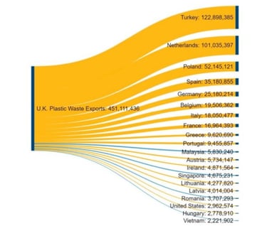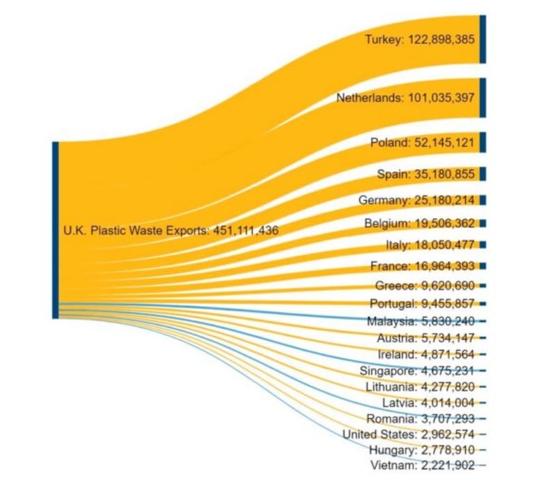Polyethylene makes up 94% of the plastic waste which the UK exports to Turkey and 74% of all plastic waste Turkey receives.