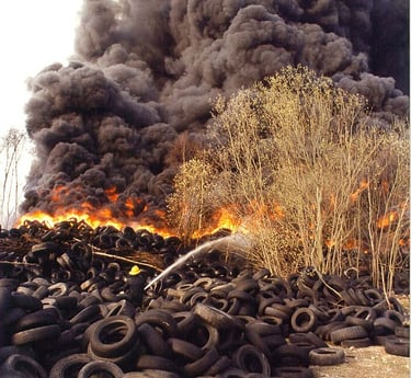 If tyres aren’t pyrolized for cheap fuel or made into building materials or ground up for children’s playgrounds, they end up on huge dumps, often in the Middle East and Africa. These are huge fire risks and potential carbon bombs, as we have seen many times over the last half century.